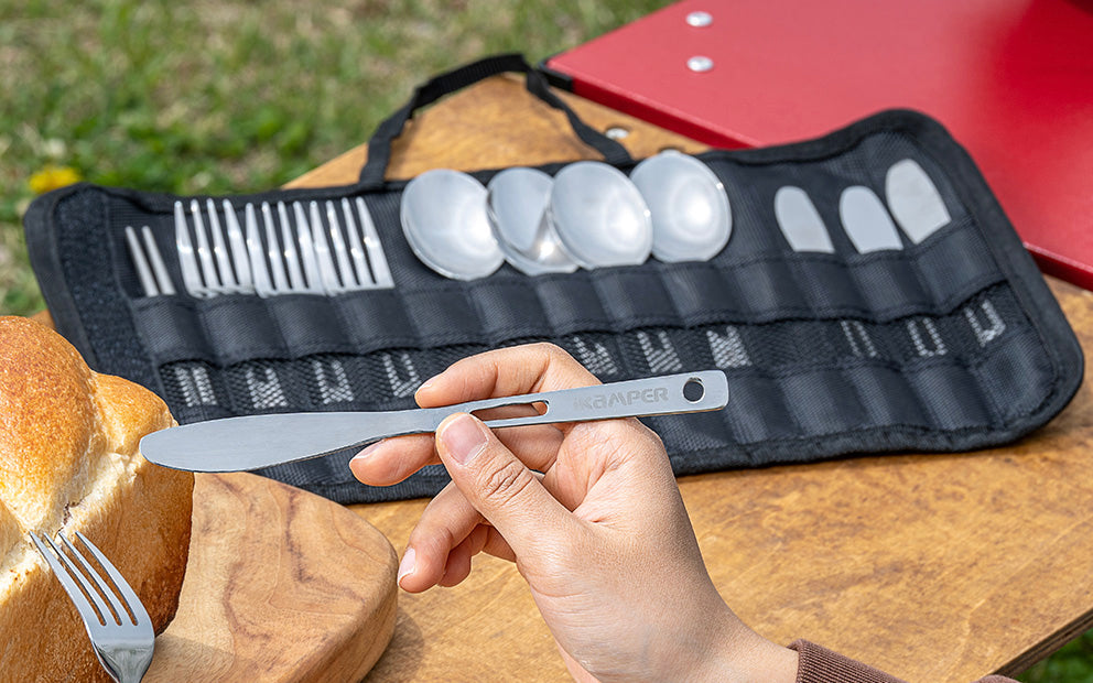 Le service de couverts Camp est une solution polyvalente de 13 pièces en acier inoxydable, idéale pour les aventures en plein air et un usage quotidien. Compatible lave-vaisselle, durable et compact, il comprend un service pour quatre personnes et un étui de transport faisant également office de présentoir.