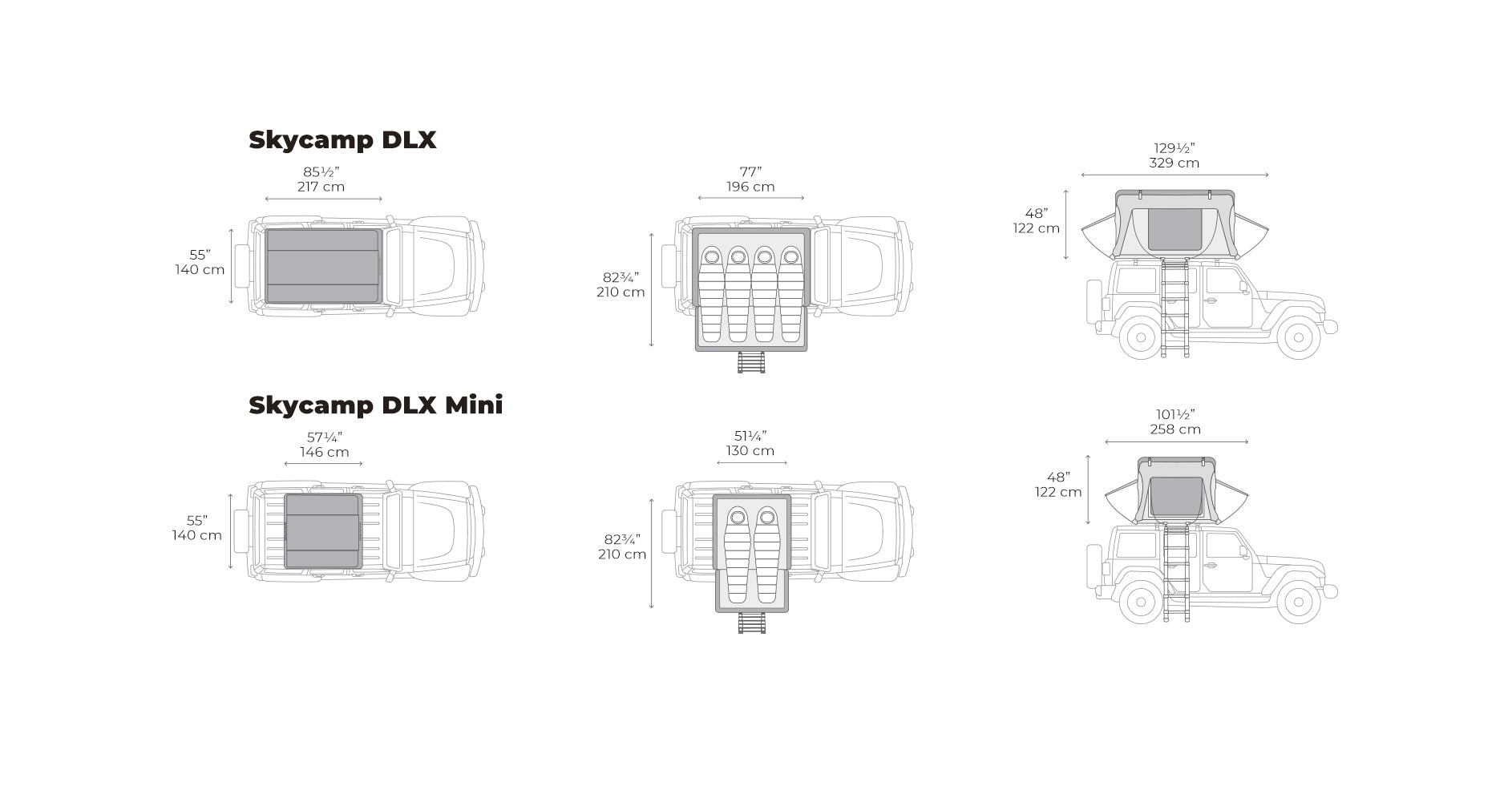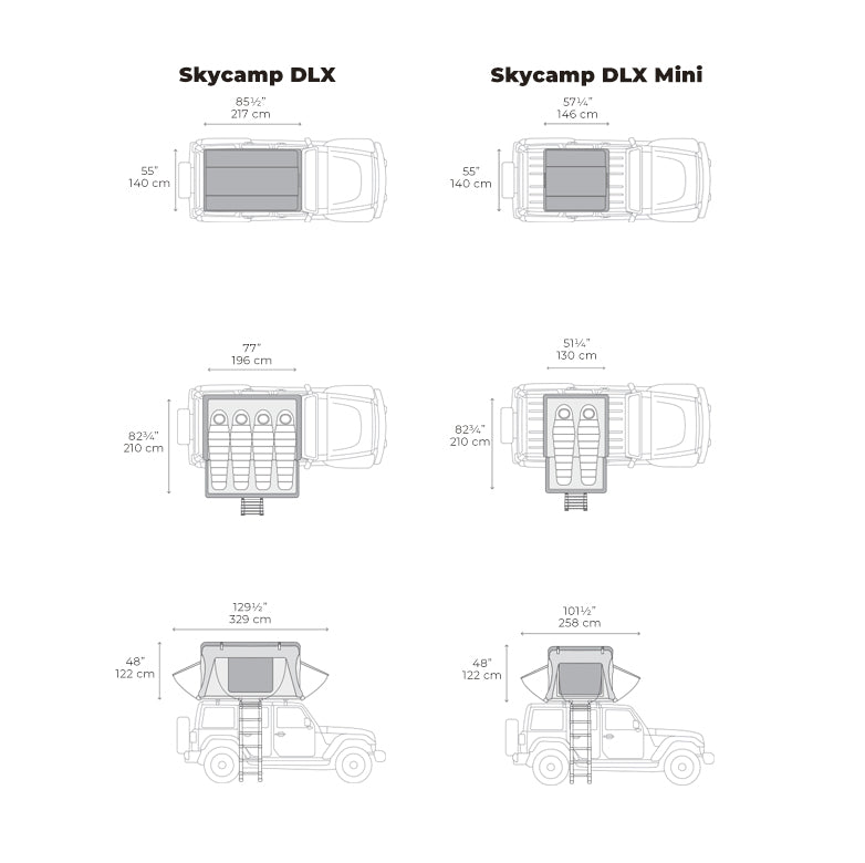 La Skycamp DLX Mini allie luxe et praticité à une tente de toit compacte pour 2 personnes. Dotée d'un éclairage LED intégré, d'un matelas autogonflant de 10 cm avec pompe AirDown™ et d'un sol isolant doublé de liège, elle est conçue pour un confort optimal en toute saison. Avec sa coque renforcée et discrète, son tissu occultant et sa vue panoramique, c'est la tente de toit la plus luxueuse de sa catégorie.
