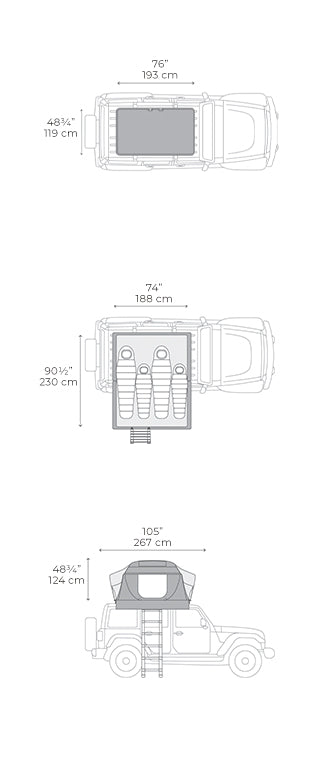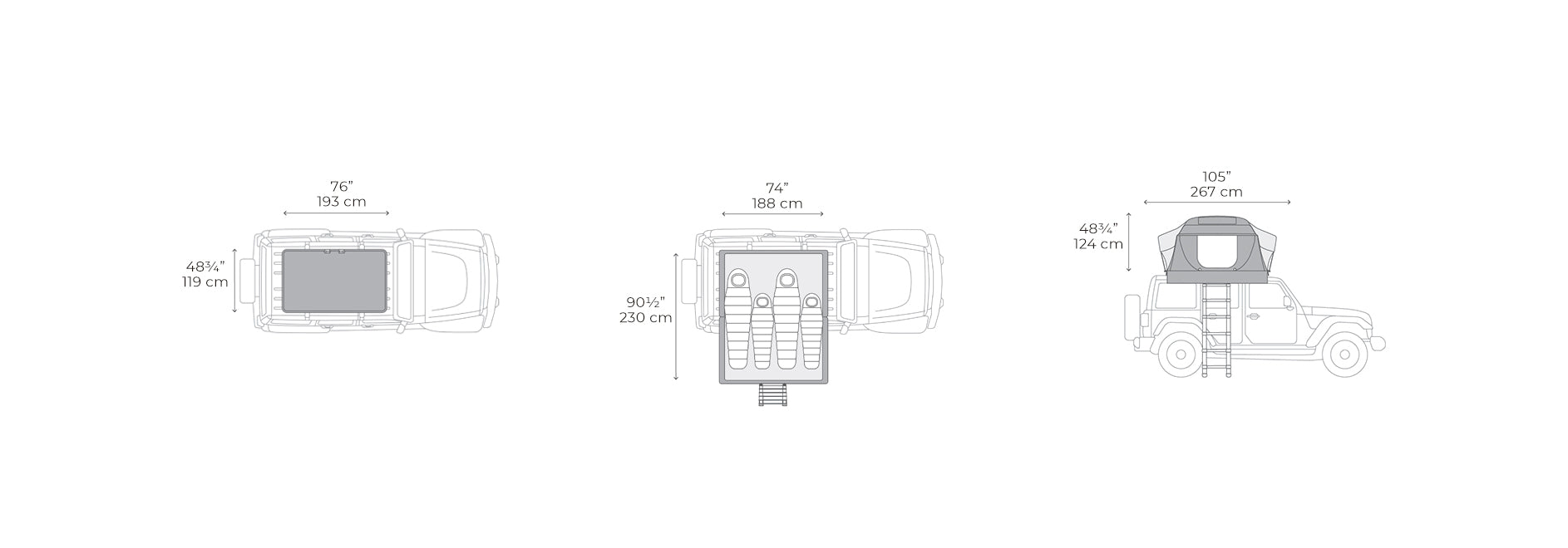 | Empreinte au sol (ouverte) | 74 x 90 ½ po (188 x 230 cm) et 46,5 pi² (4,32 m²) |