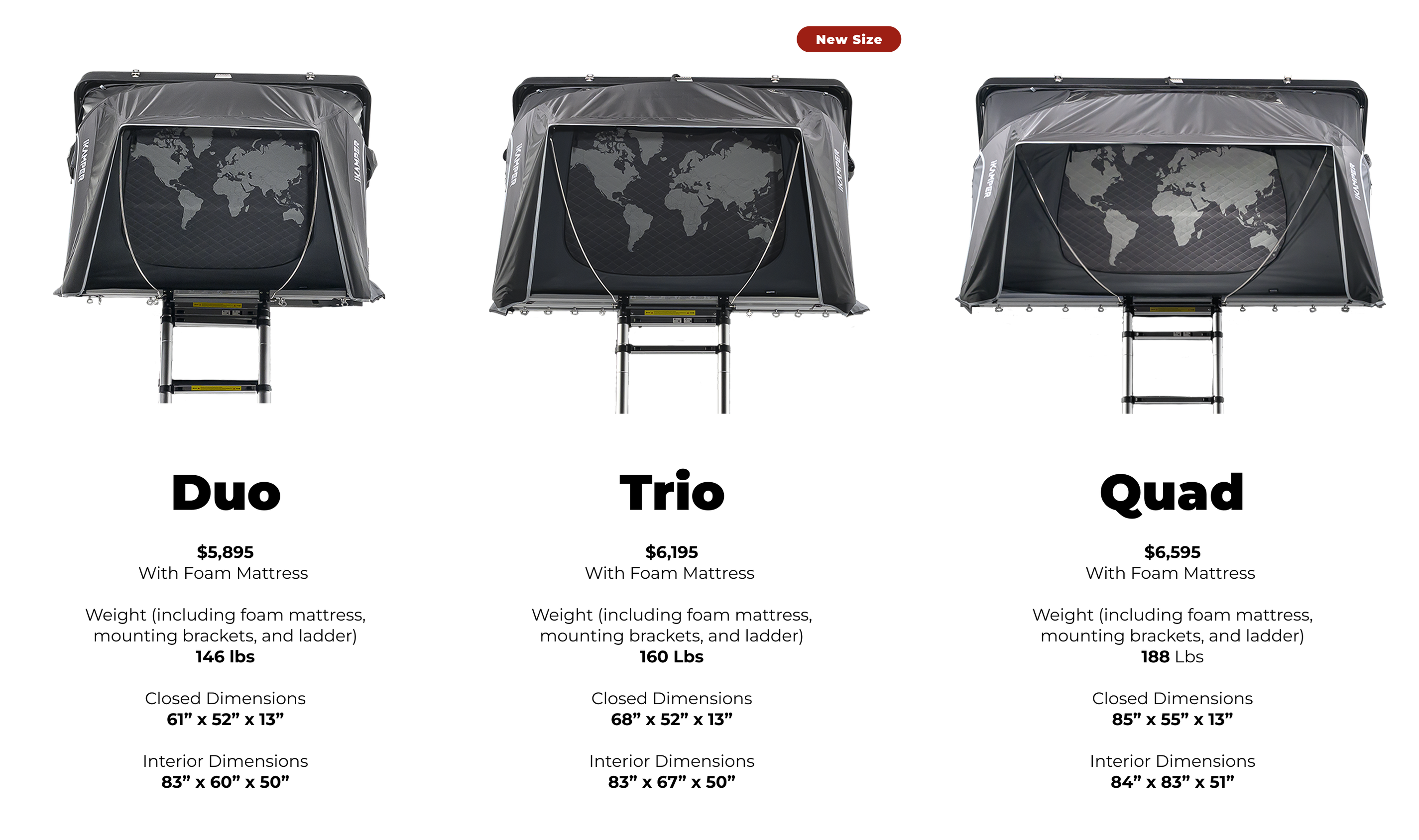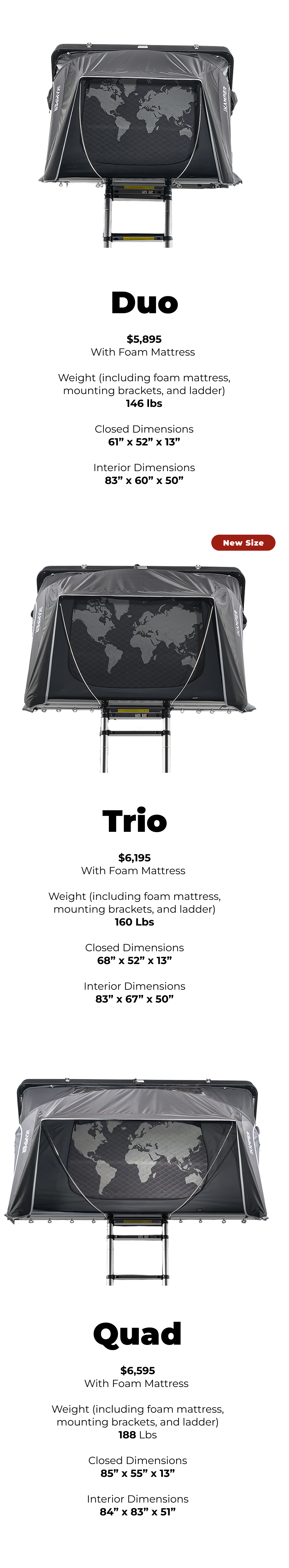 With three sizes and a narrower footprint for the Duo and new Trio, it’s easier than ever to find a Skycamp that fits your vehicle.